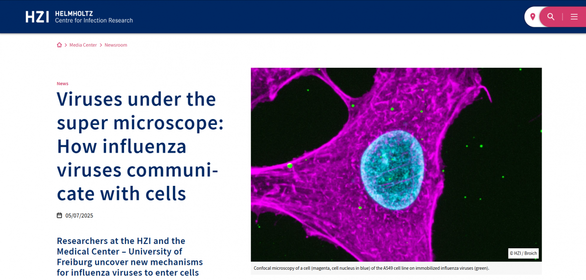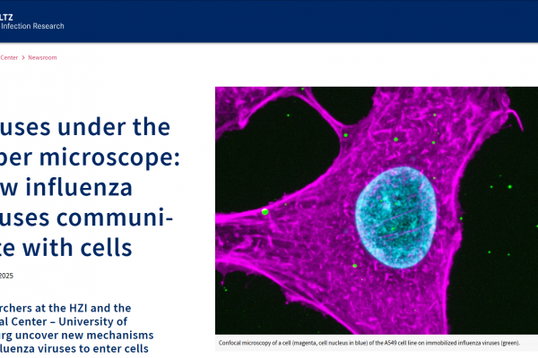 Researchers at the Helmholtz Centre for Infection Research (HZI) and the Medical Center – University of Freiburg have developed a method that can be used to study the interaction of viruses with host cells in unprecedented detail. This scientific breakthrough is helping scientists to get a much clearer view of how viruses enter human cells. The new results not only provide detailed insights into the biology of influenza viruses, but also form a methodological basis for investigating the entry mechanisms of potential pandemic pathogens in a more targeted manner - and thus identifying new targets for antiviral therapies - to be applied in the COMBINE project.